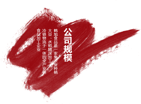 黑龍江鶴旭食品有限公司成立于2013年8月,企業(yè)座落于黑龍江省方正縣經(jīng)濟(jì)開發(fā)區(qū),注冊資金2000萬元。占地面積5萬平方米,總投資2.24億元。該公司以大豆、水稻食品加工產(chǎn)業(yè)為主,以制大豆休閑食品、大豆蛋白粉、非轉(zhuǎn)基因大豆油、大米為核心。是一家集農(nóng)業(yè)種植、大豆、水稻精深加工、冷鏈物流于一體的全產(chǎn)業(yè)鏈?zhǔn)称芳庸て髽I(yè),預(yù)計(jì)全部建成后年銷售額6億元,利稅4200萬元...
